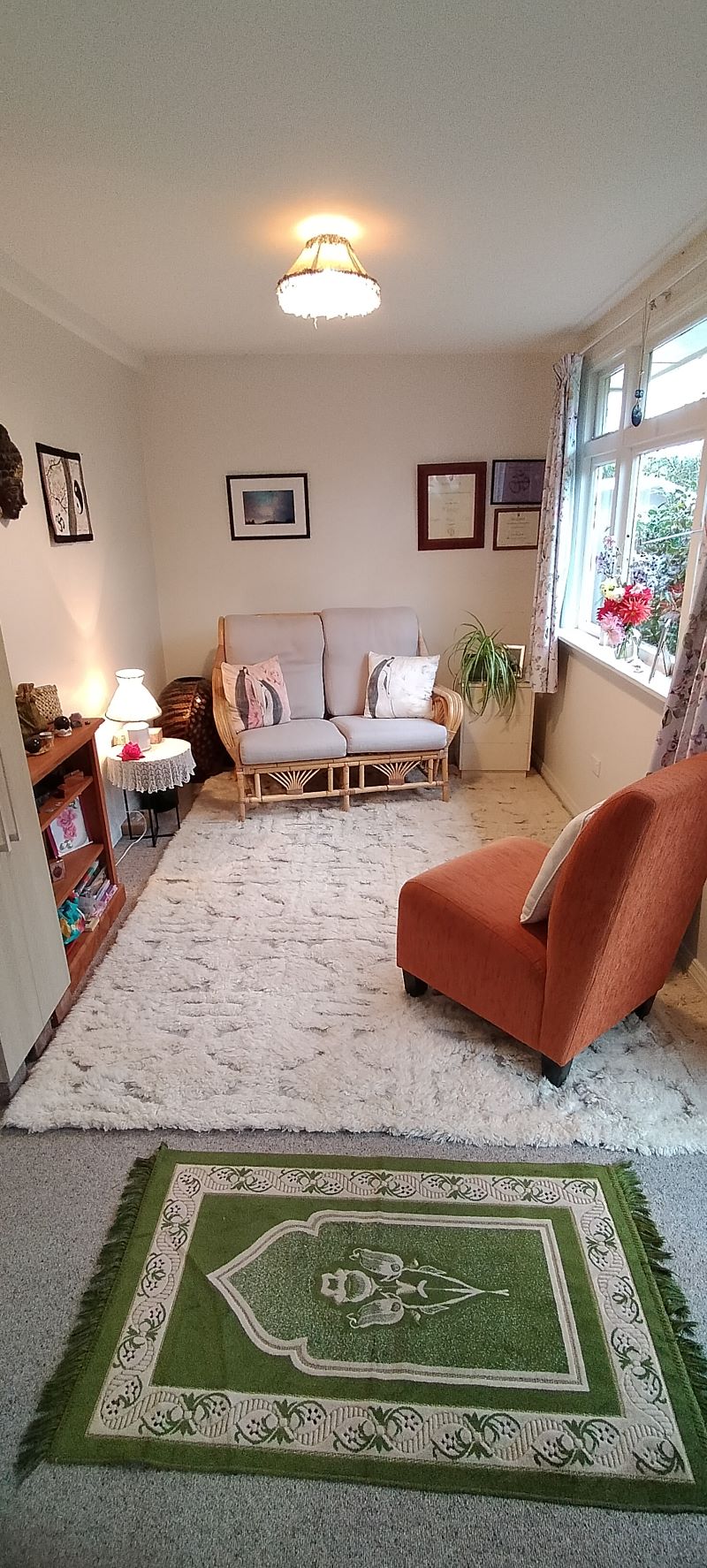 As you arrive for your 'one to one' session at my home - based practice room, you will be enveloped in a peaceful garden space and private room for your personal healing...